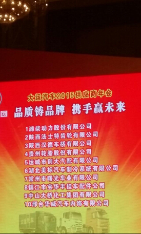 熱烈祝賀創(chuàng)大汽配榮獲大運(yùn)集團(tuán)2014年度優(yōu)秀供應(yīng)商