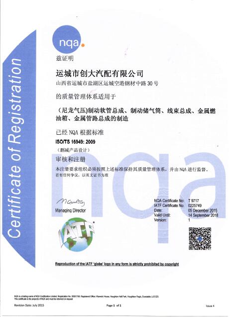 您當前位置:首頁 -> 資質榮譽 -> TS16949證書